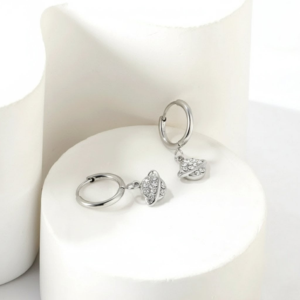 CZ Planet Pendant Necklace & Earrings Set